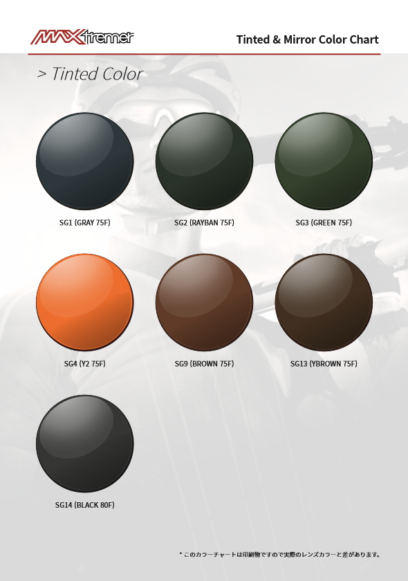 ・ベースカラー7種、ミラーコーティング11種と他社よりもカラーやミラーの種類が豊富です。
