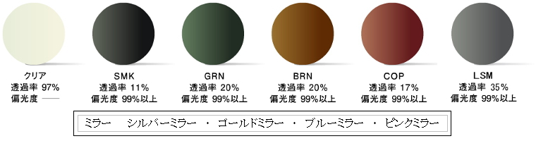 ・ベースカラー6種、ミラーコーティング4種が選べます。